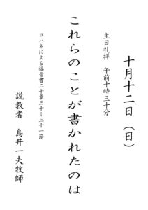| 聖 書 | ヨハネによる福音書20章30-31節 |